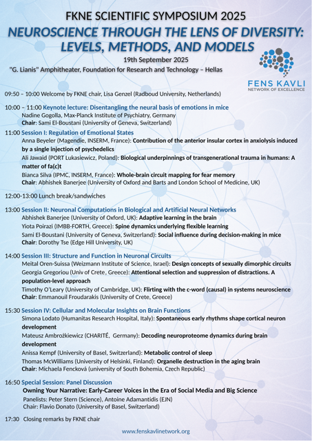 FENS-Kavli Network of Excellence (FKNE) Symposium, which will take place on 19th September 2025 at “G. Lianis” Amphitheater, Foundation for Research and Technology – Hellas/Crete .
